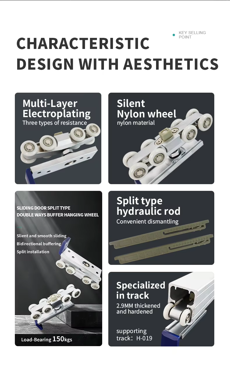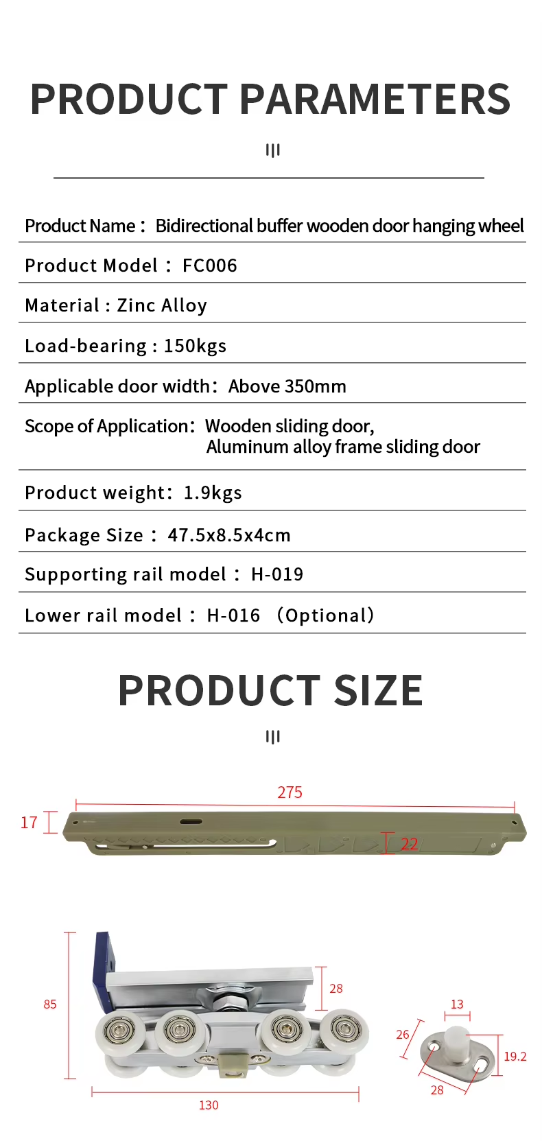 FC006 Two Way Buffer Damping 150kg Sliding Door Split Type Roller