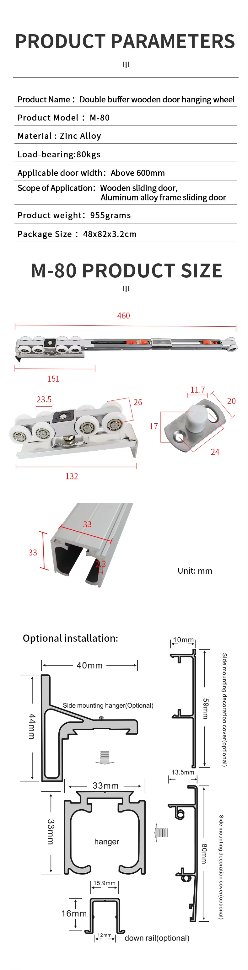 M80 Bearing 80KG Silding Door Hanging Wheel Tracks Roller